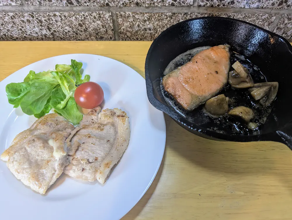 100均スキレットでパパッと作れて美味しいキャンプ飯、栄養のバランスも考え肉料理と魚料理の2品の作り方の紹介です。