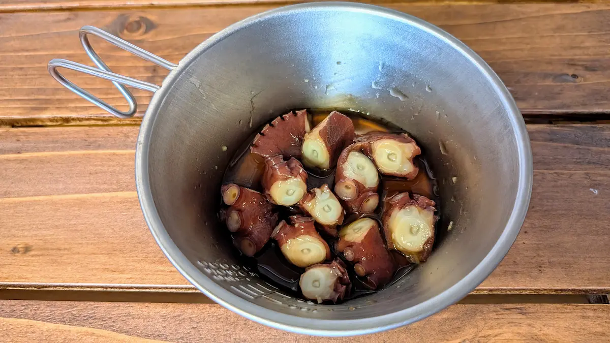 上記の漬け込みタレの材料を全て器に入れよく混ぜてから、タコを入れよくまぶして10~15分漬け込みます。