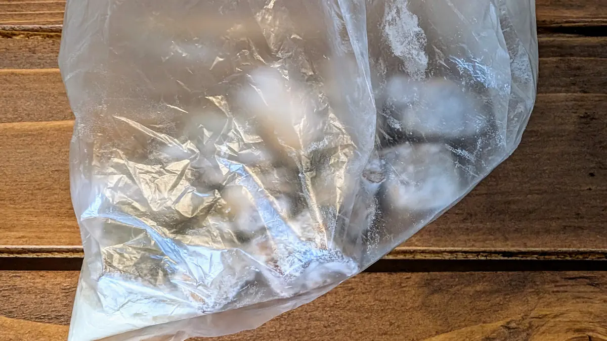 ポリ袋にタコと片栗粉、小麦粉を入れよく振り、粉をまぶします。