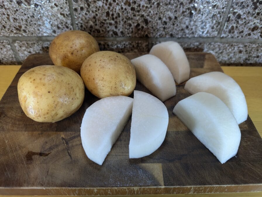 1)ジャガイモは洗って芽を取る、皮はそのまま。