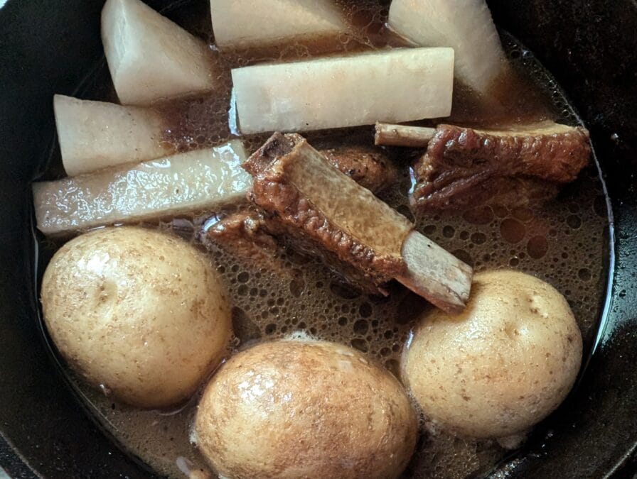 写真は30分煮込んだ状態、このぐらいから食べれますが煮込むほど柔らかくなり美味しくなります。