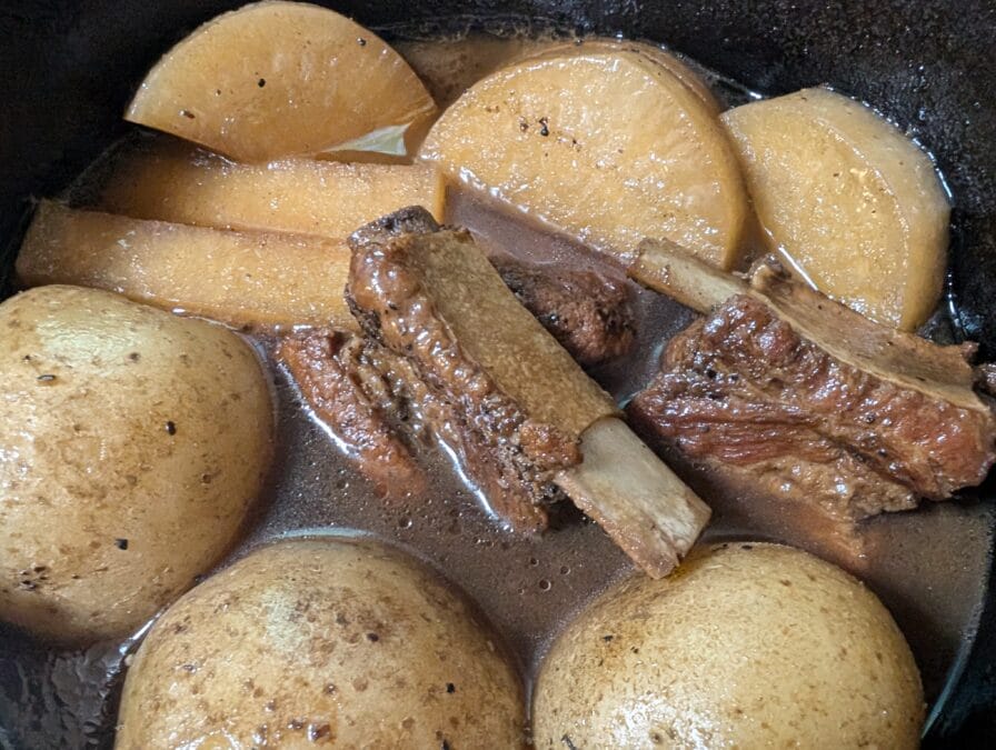 この記事を書いているのは12月下旬、私の住む北海道の屋外はすっかり雪景色、冬キャンはしない我が家でせめて食事だけでもアウトドア気分を味わうためにサービングポットを使ってワイルドなスペアリブのコーラ煮を作りました。