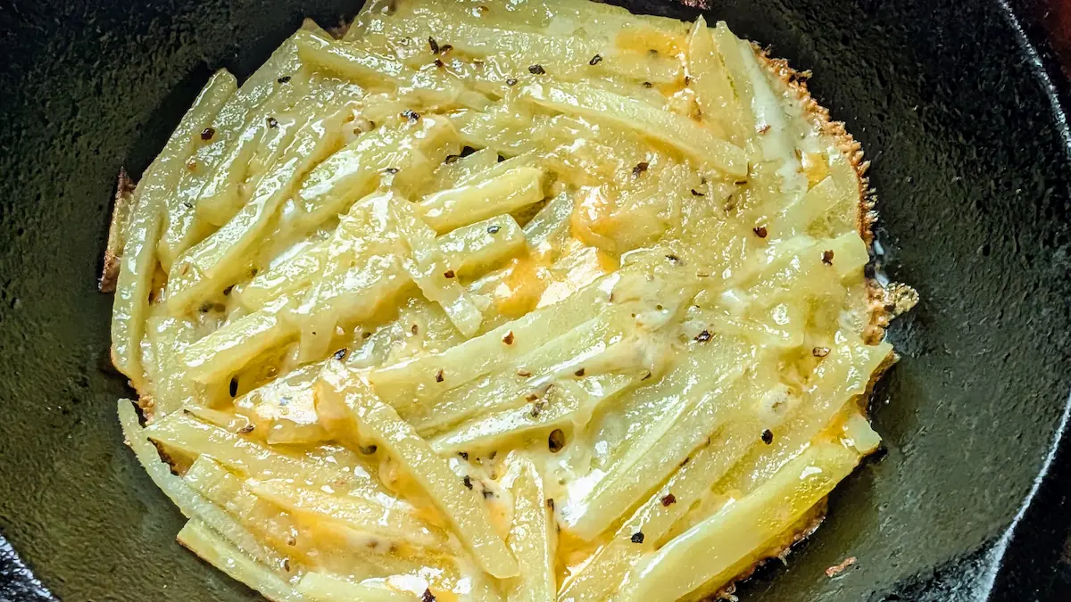 【100スキでキャンプ飯】簡単で美味しい、ジャガイモとチーズのガレット